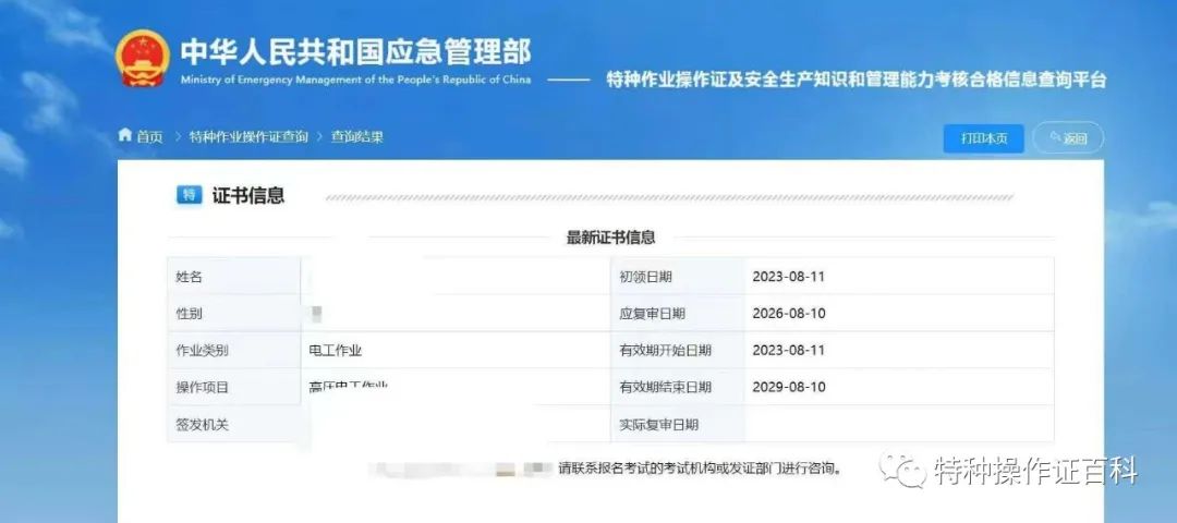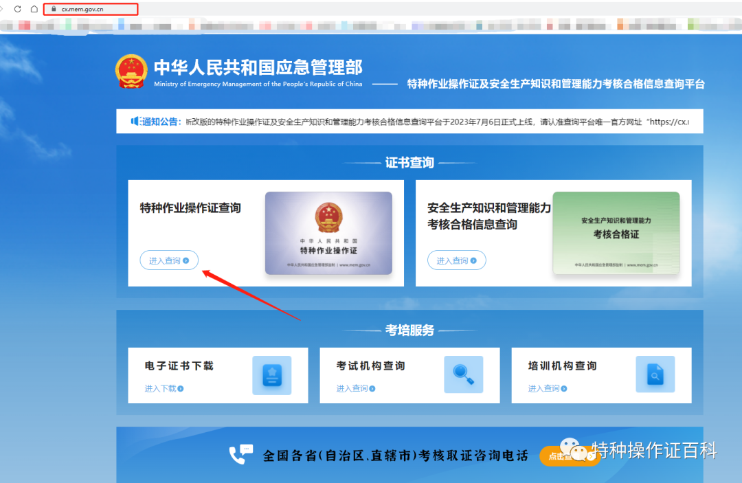 應急管理部政府網站為全國特種作業人員操作證信息查詢系統,
